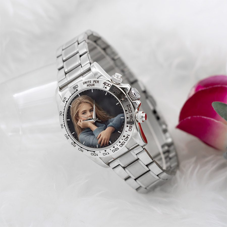 ساعت مچی با طرح تصویر مورد نظر. شما میتونید عکس مورد نظرتون رو در قسمت بالا بارگذاری کنید تا ساعت مچی بر اساس درخواست شما طراحی و تولید بشه.